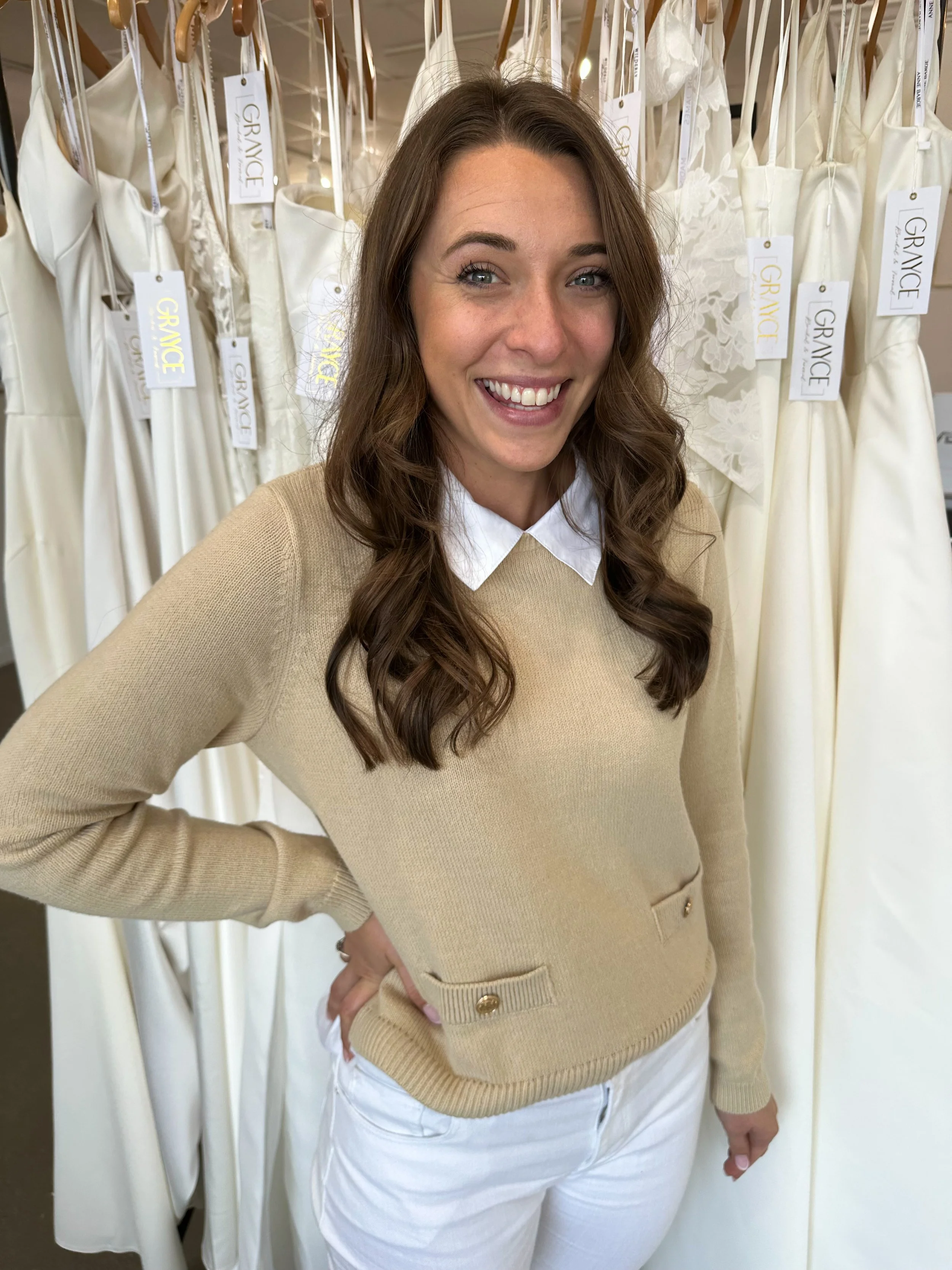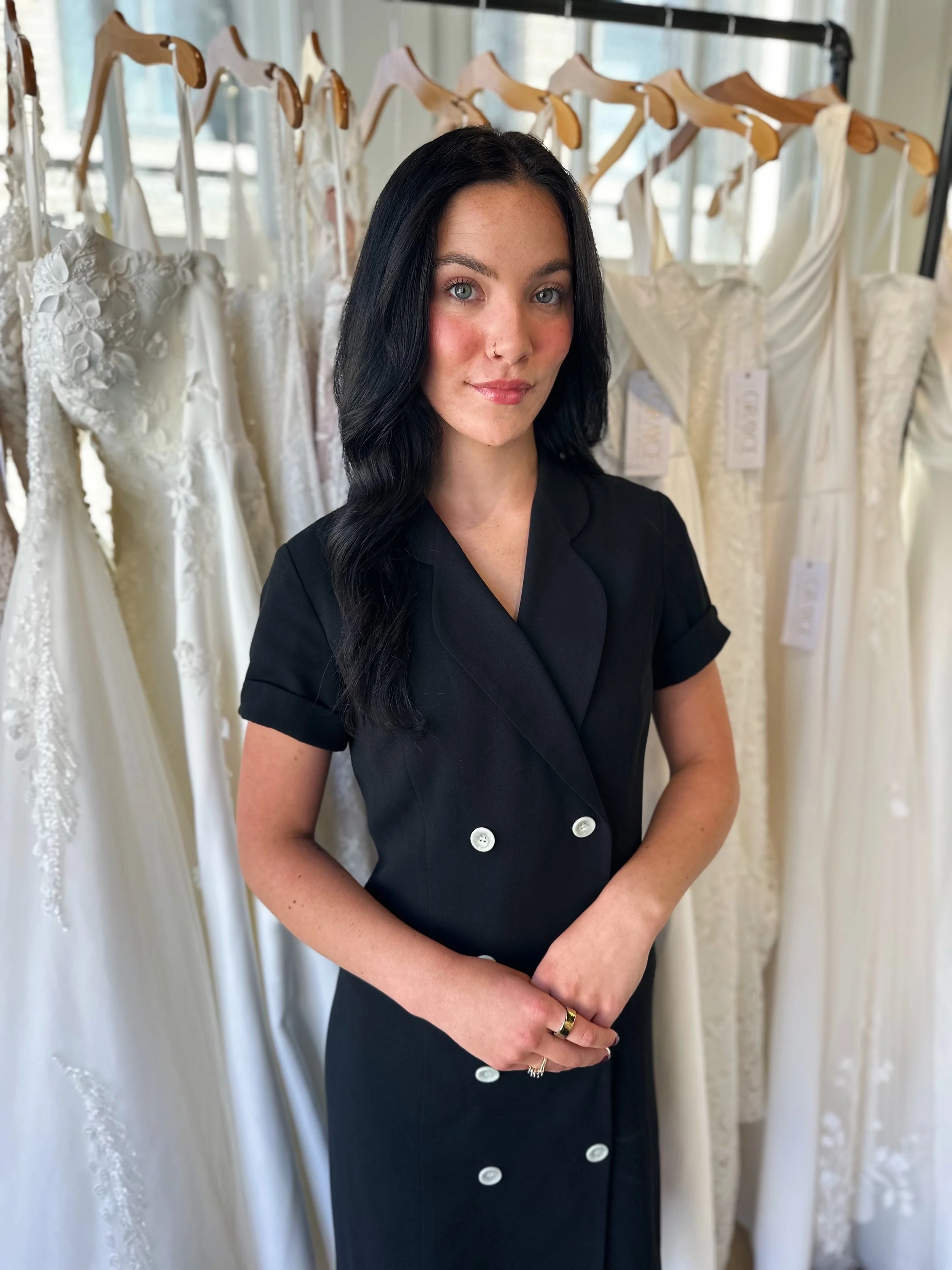 position at a local company. Truthfully, I hated it. I loved the sales component of the job and knew that I wanted to pursue that, but I hated sitting all day in a cubicle staring at a screen. I did it for 2 years before I decided that I couldn't do it anymore. Enter Grayce. The day after I quit my job, I received an email about applying for the CEC position here at Grayce Bridal via a familial connection. I came in for an interview, and the rest is history! I had spent so long missing being face to face with people and empowering them to feel confident in themselves. Now, I could once again be back in front of people, empowering women to feel beautiful in their own skin, and getting to play a role in making such a special day memorable!
